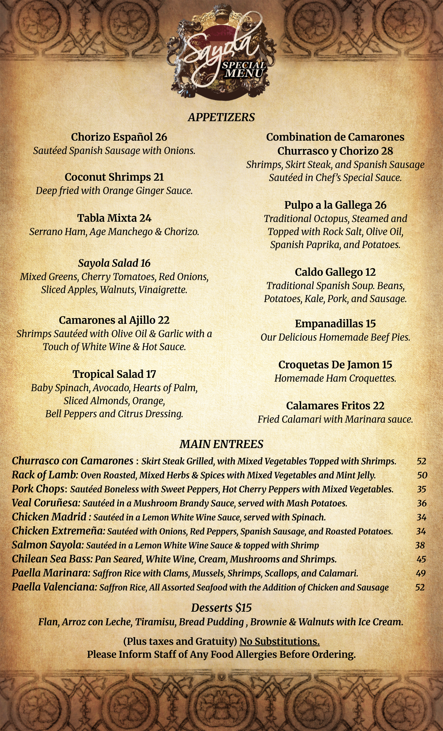 Flamenco Show Menu